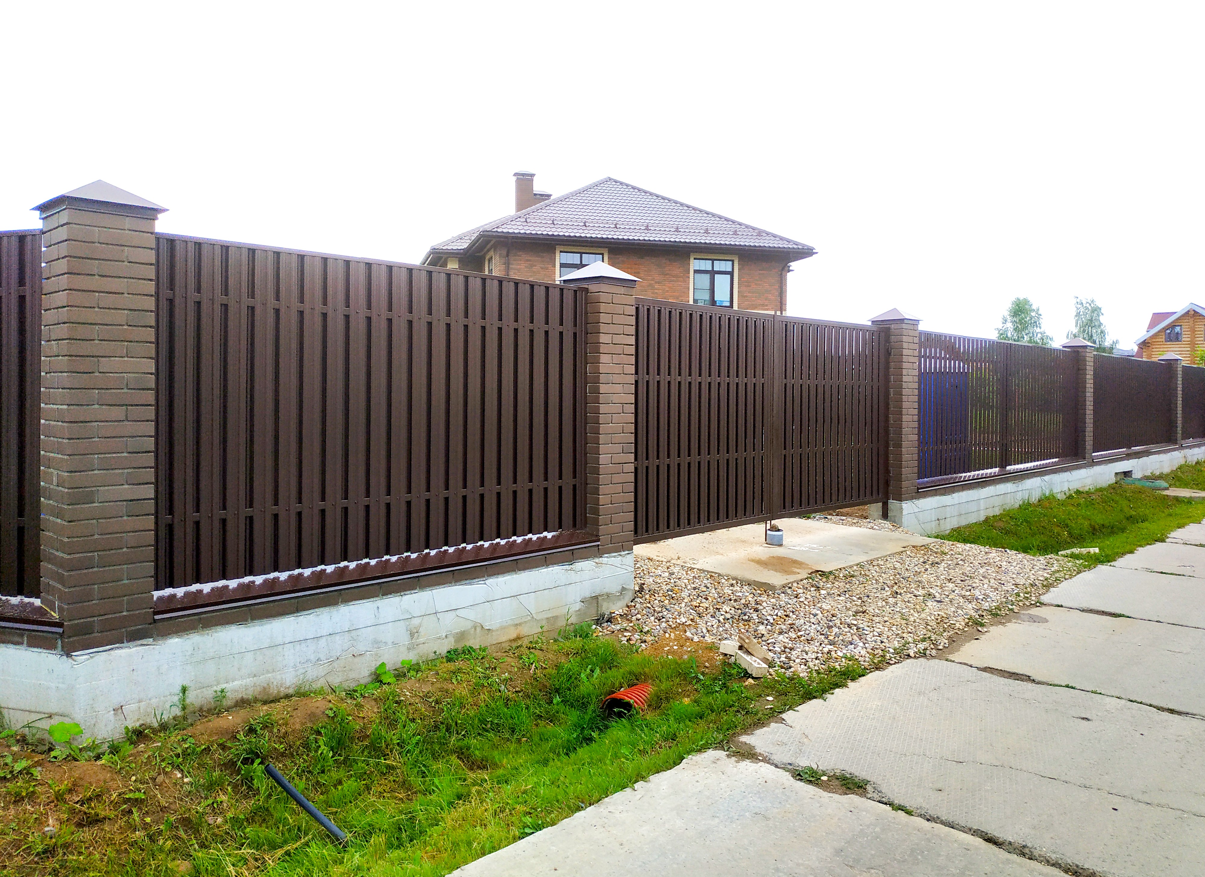 Заборы и ограждения из евроштакетника с кирпичными столбами 100 метров в Дмитрове