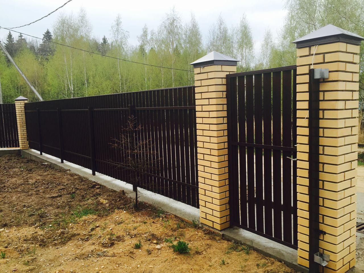 Заборы и ограждения из евроштакетника с кирпичными столбами 150 метров в Дмитрове
