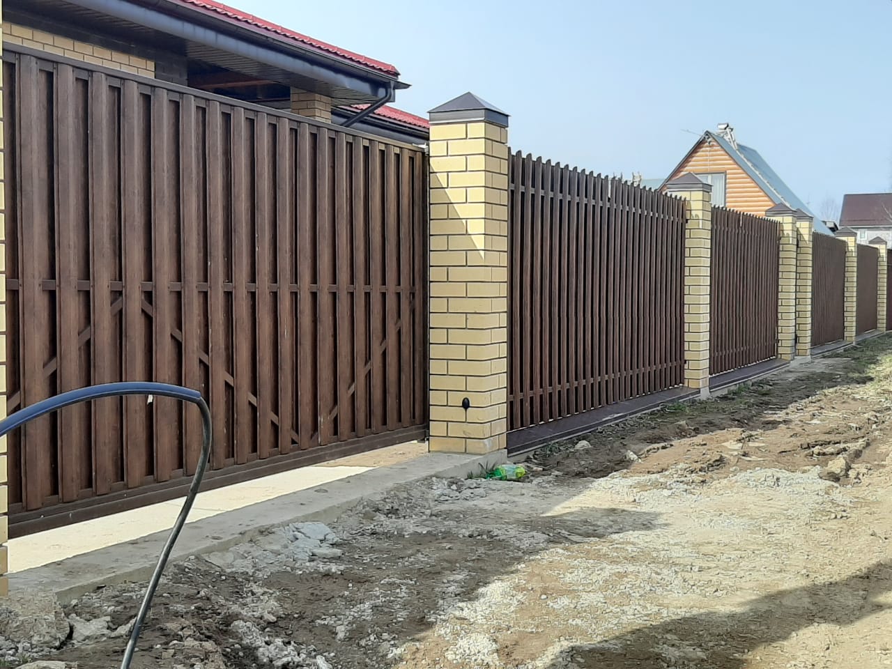 Заборы и ограждения из евроштакетника с кирпичными столбами 300 метров в Дмитрове