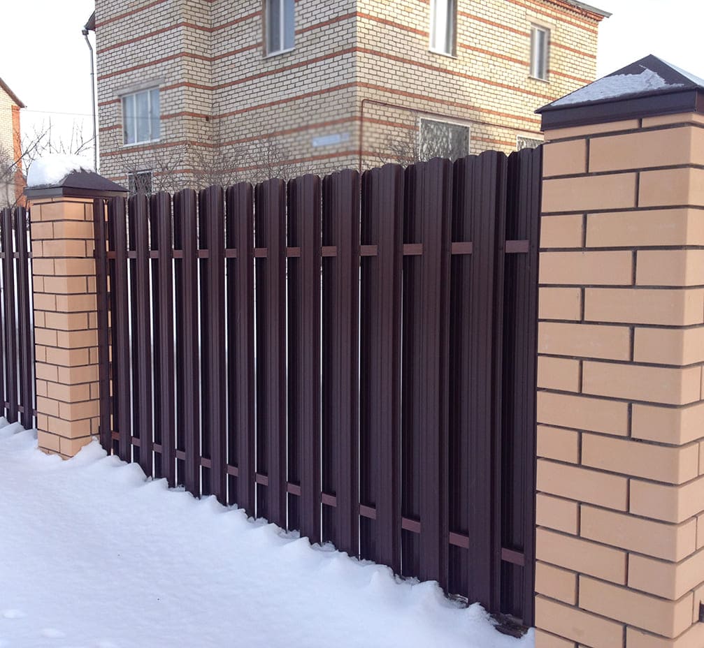 Заборы и ограждения из евроштакетника с кирпичными столбами 90 метров в Дмитрове