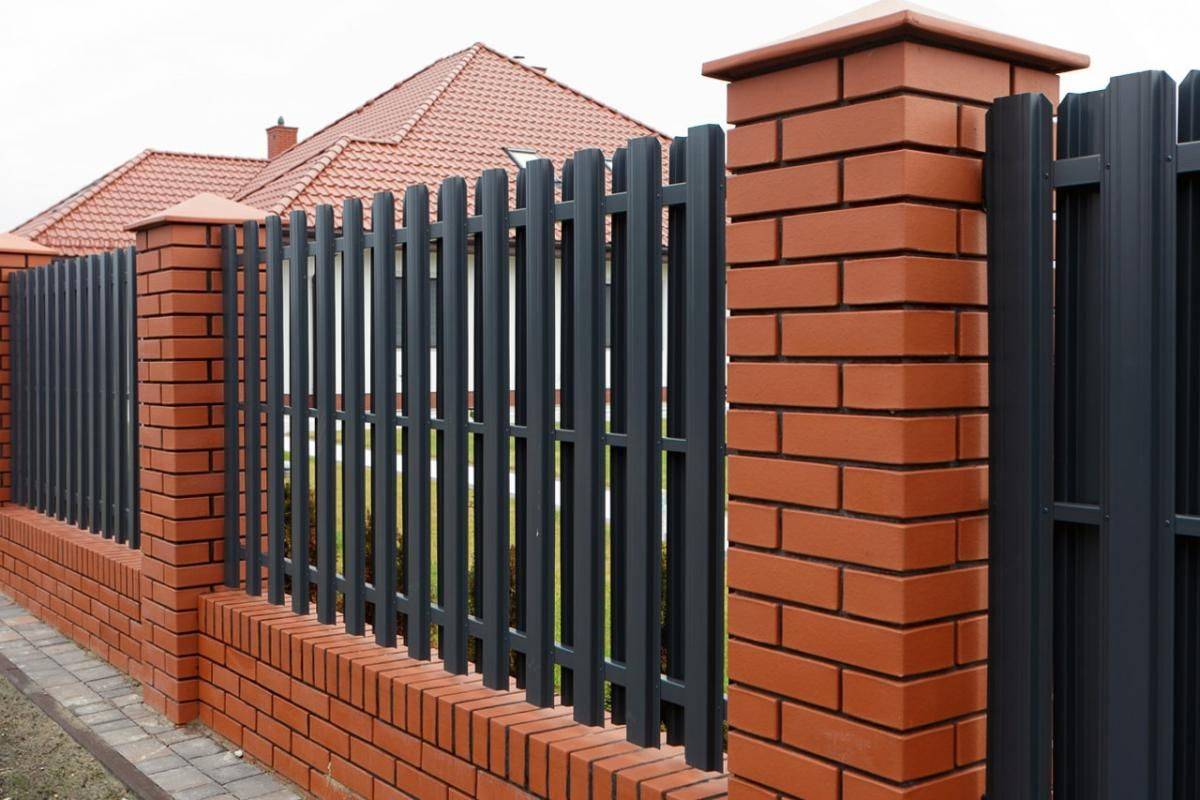 Заборы и ограждения из евроштакетника с кирпичными столбами 6 соток в Дмитрове
