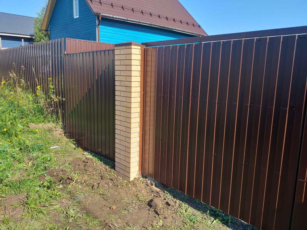 Заборы и ограждения из профнастила с кирпичными столбами 50 метров в Дмитрове